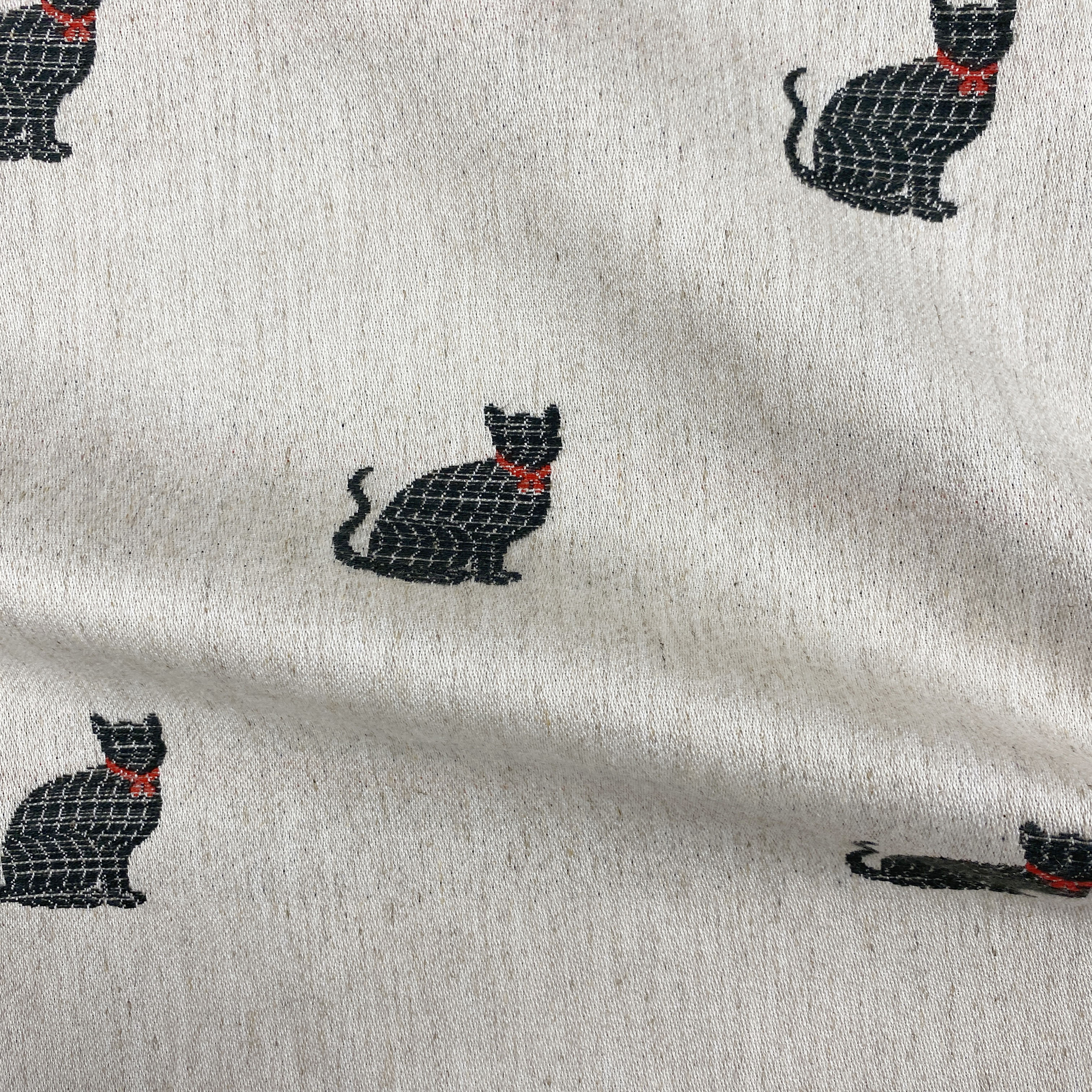 Suitable for soft furnishings and crafts, this rustic embroidered cat design set on a natural background is perfect for adding a touch of class to any room.