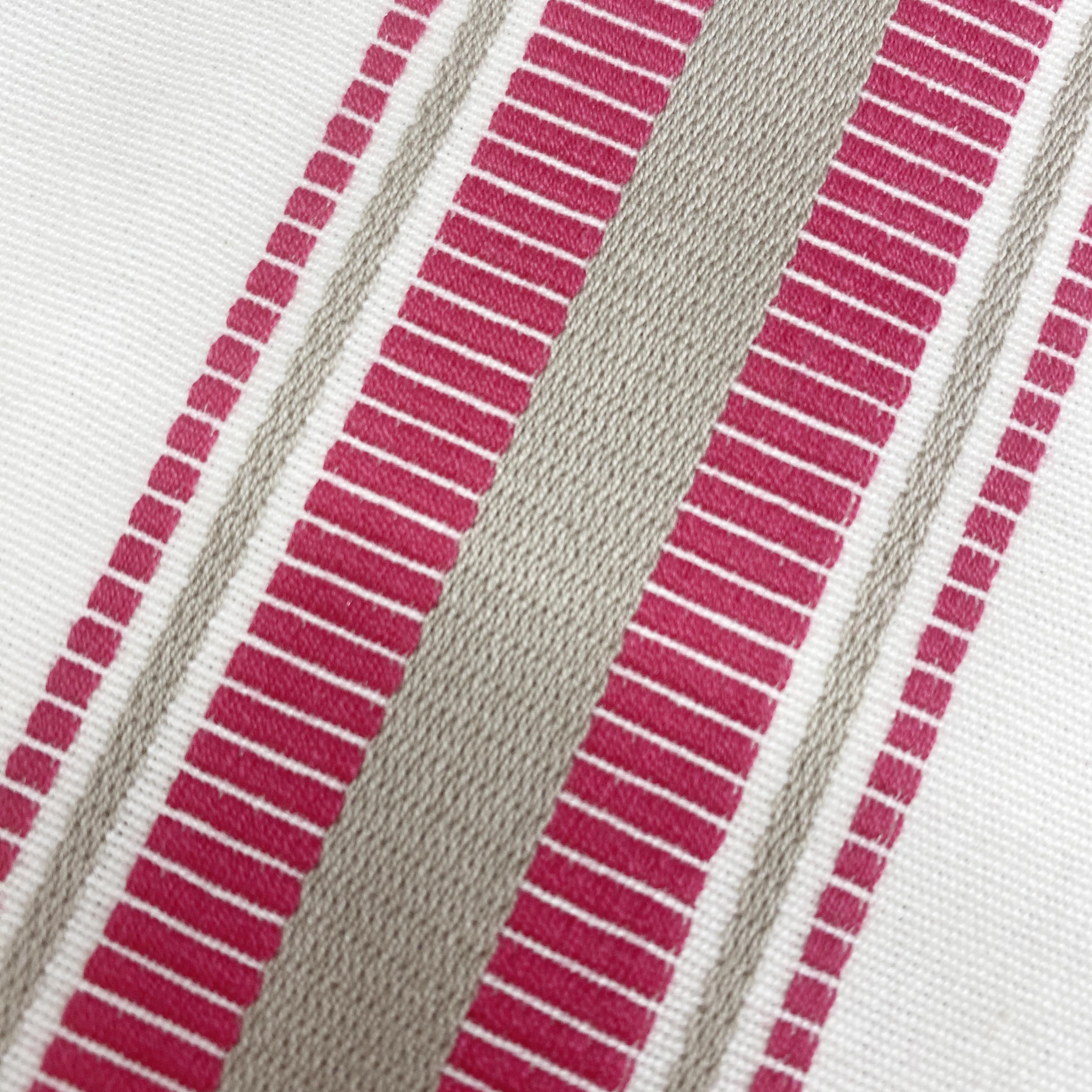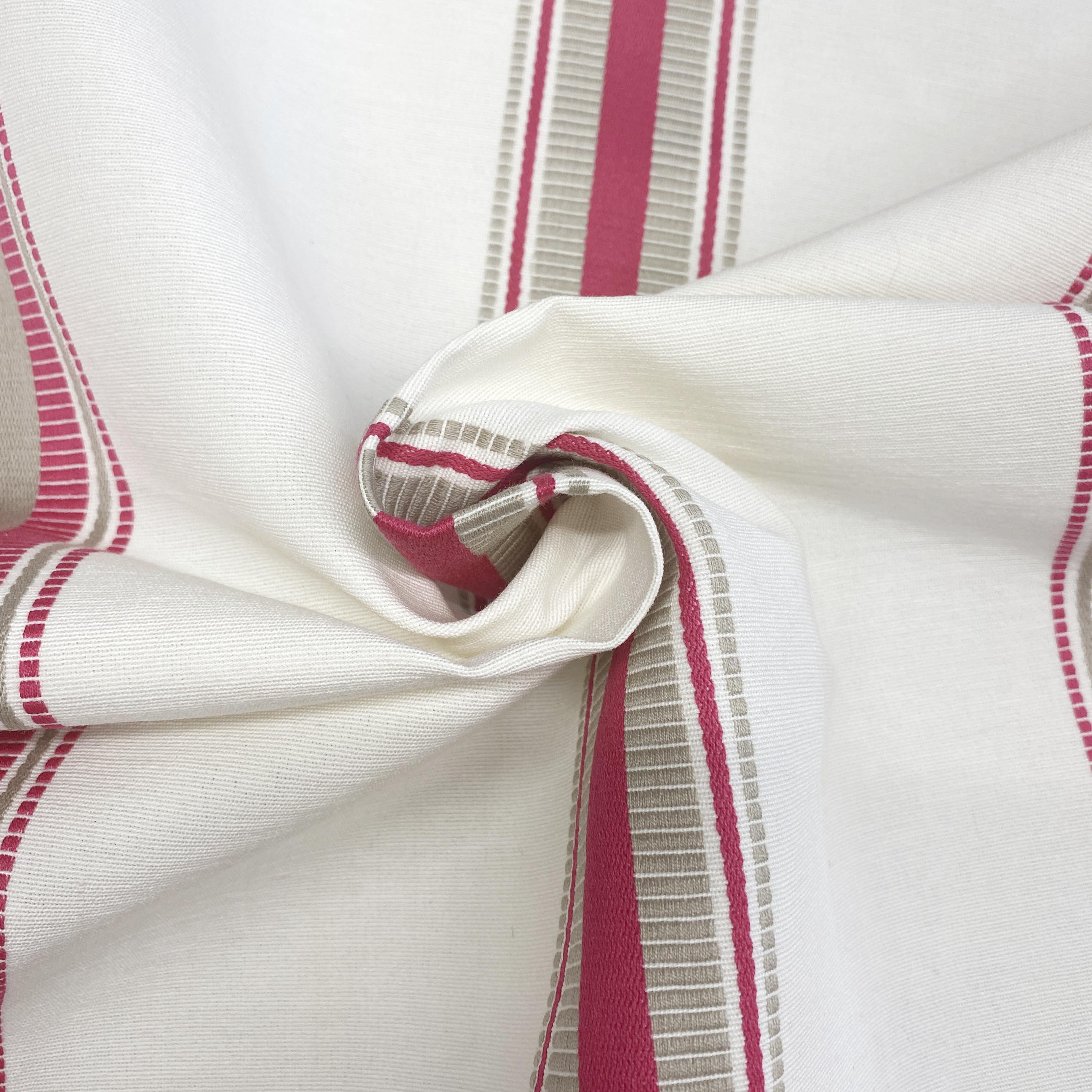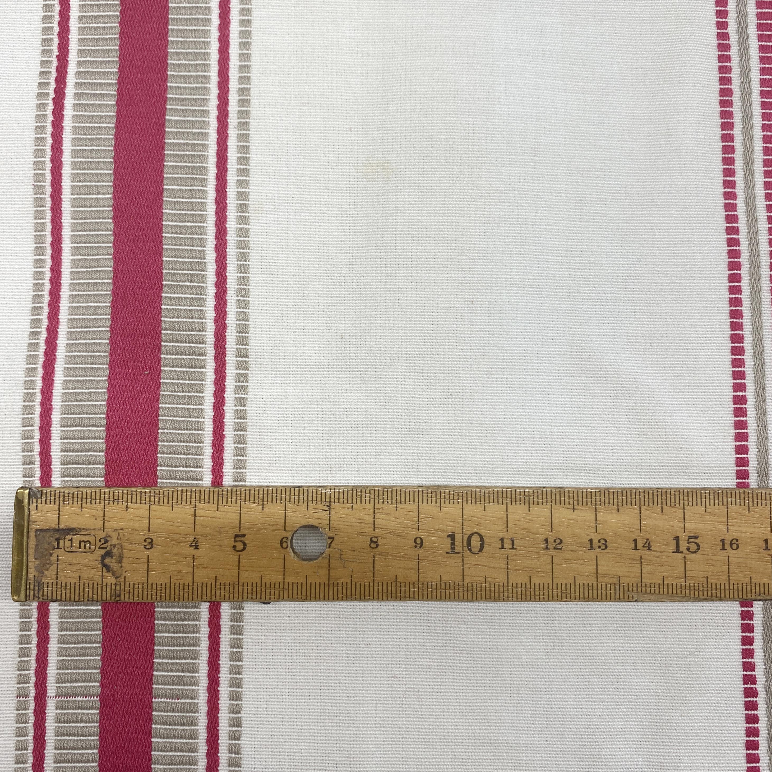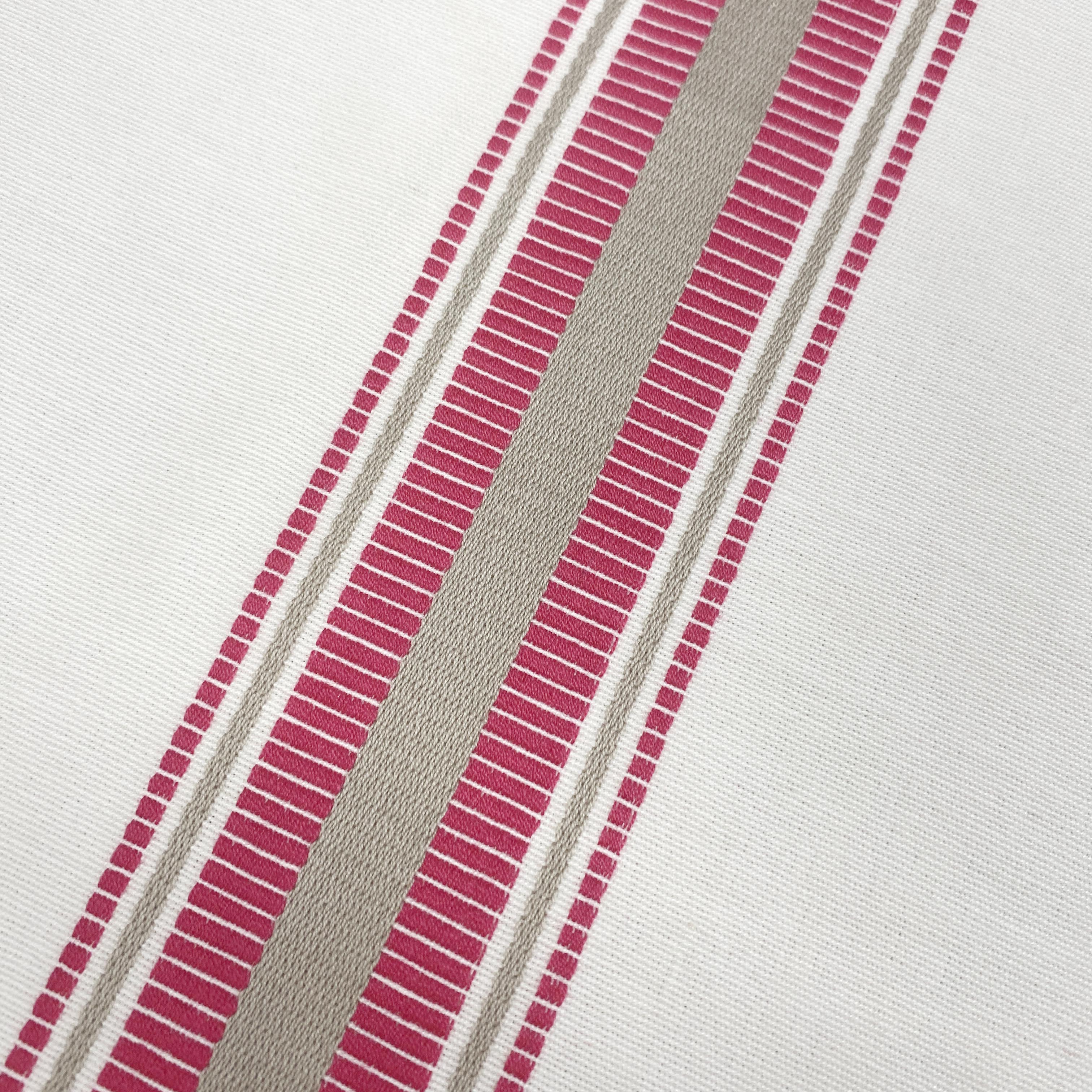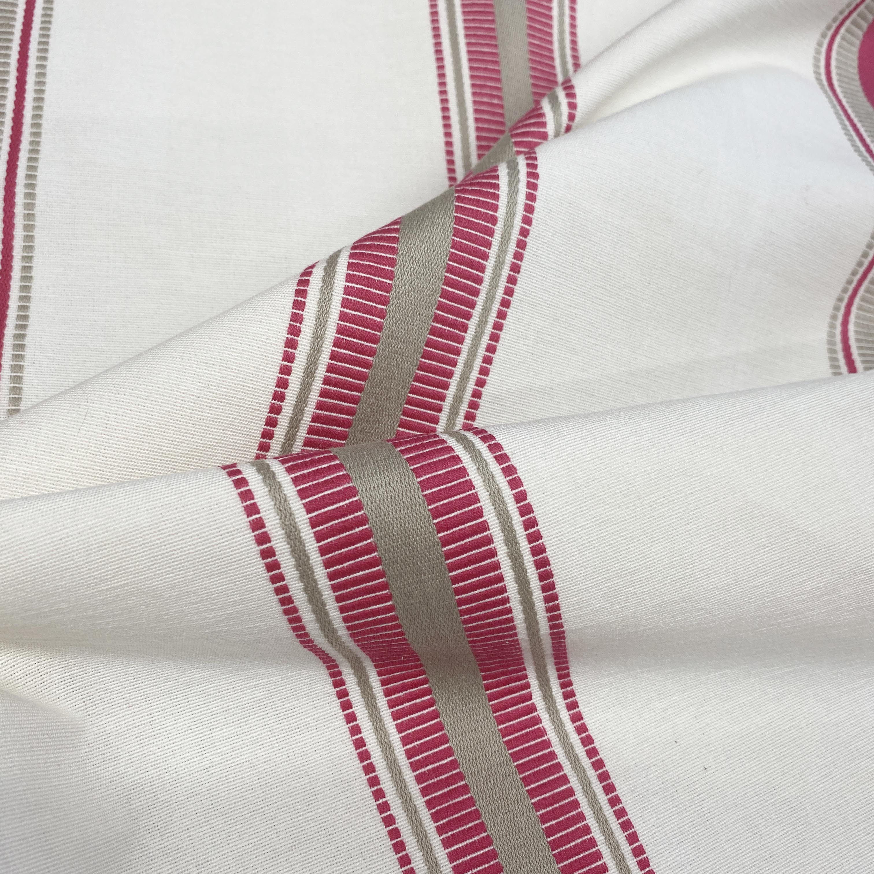 A stunningly beautiful cotton fabric with a cerise stripe embroidered design. This medium weight fabric has an elegant feel, perfect for adding a touch of class to your home.