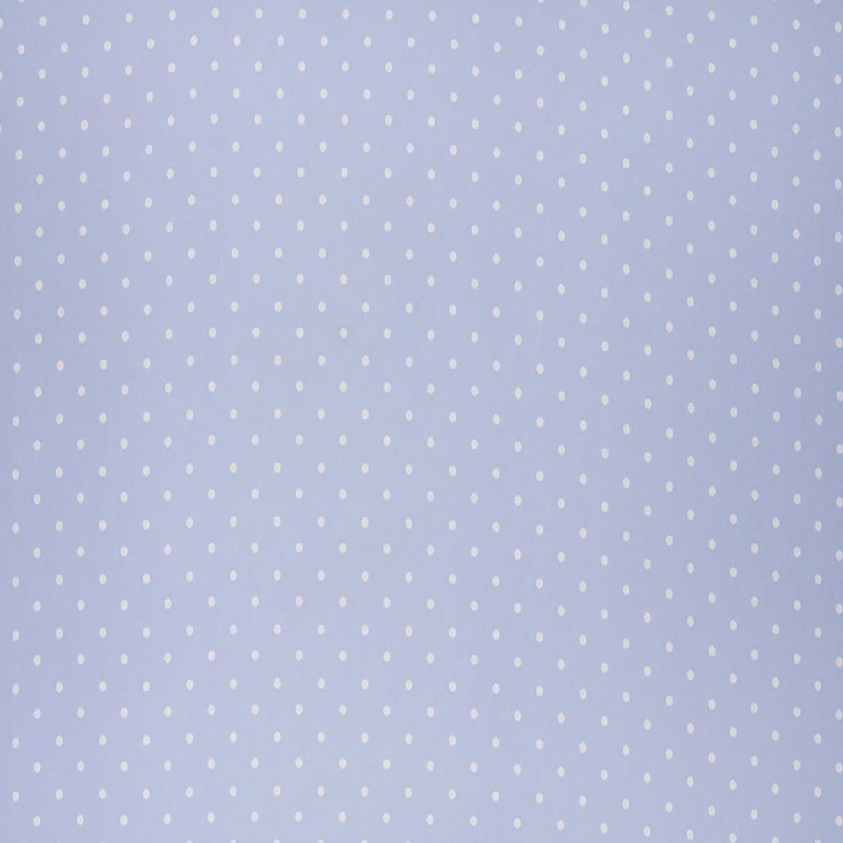 A classic spotty design from studio G, Clarke and Clarke, white polka dots, set on a soft blue background with a glossy finish for a shiny feel.
