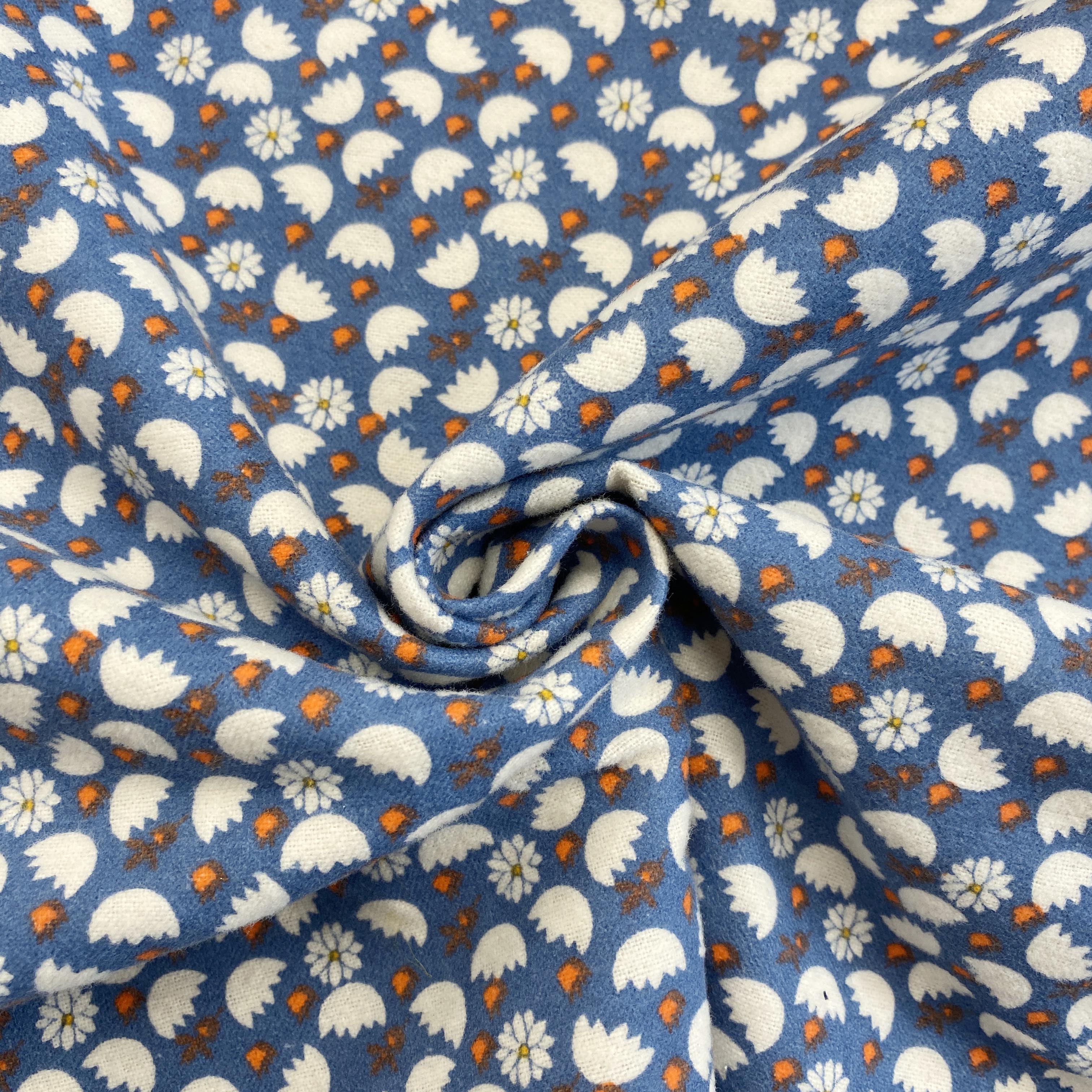A brushed cotton fabric with a pretty floral design, set on a blue background. Suitable for dress fabrics and crafts. With it's incredibly soft feel, this is the perfect winter fabric for snuggling up in to keep warm and cozy in the colder months. Would make some lovely pyjamas or shirts.