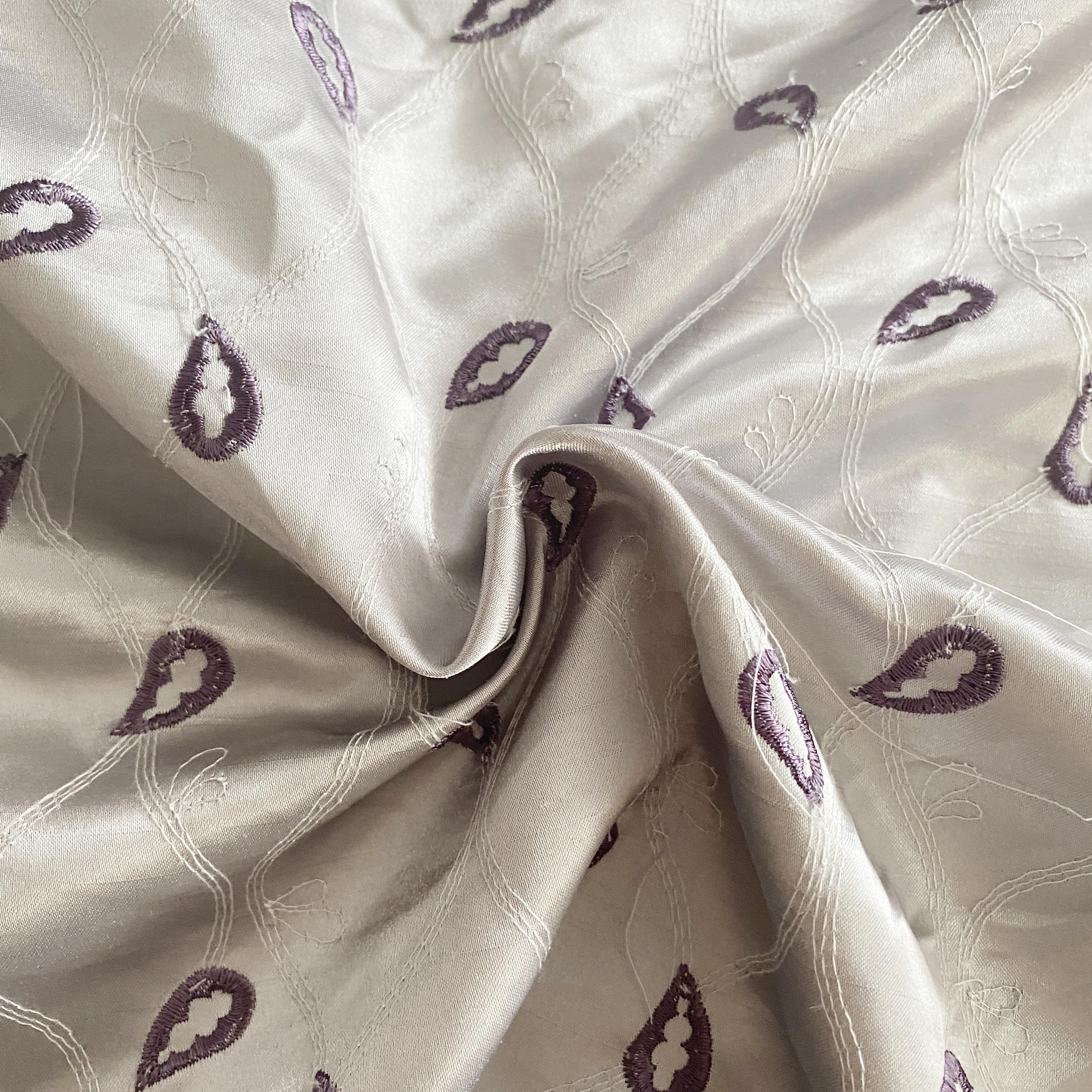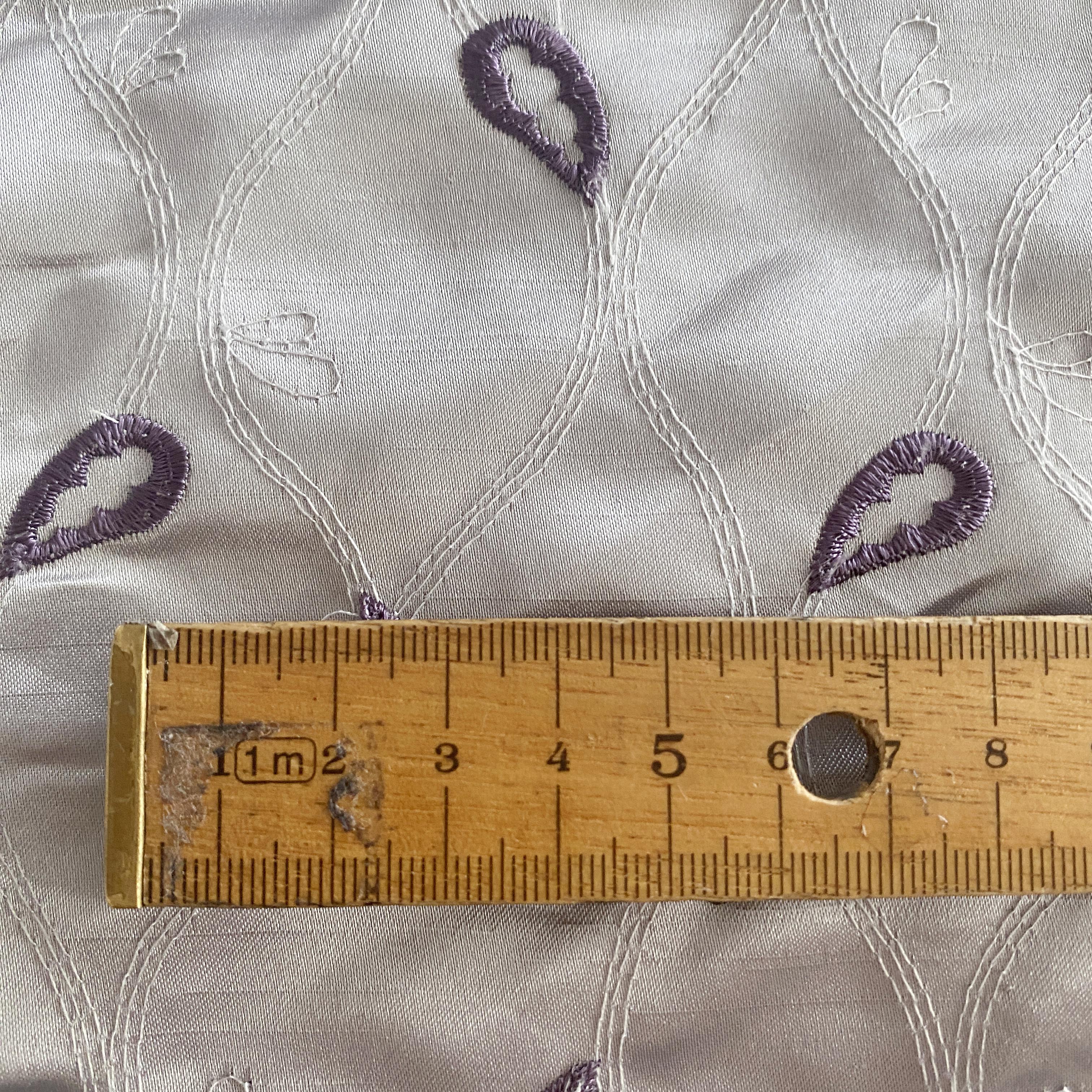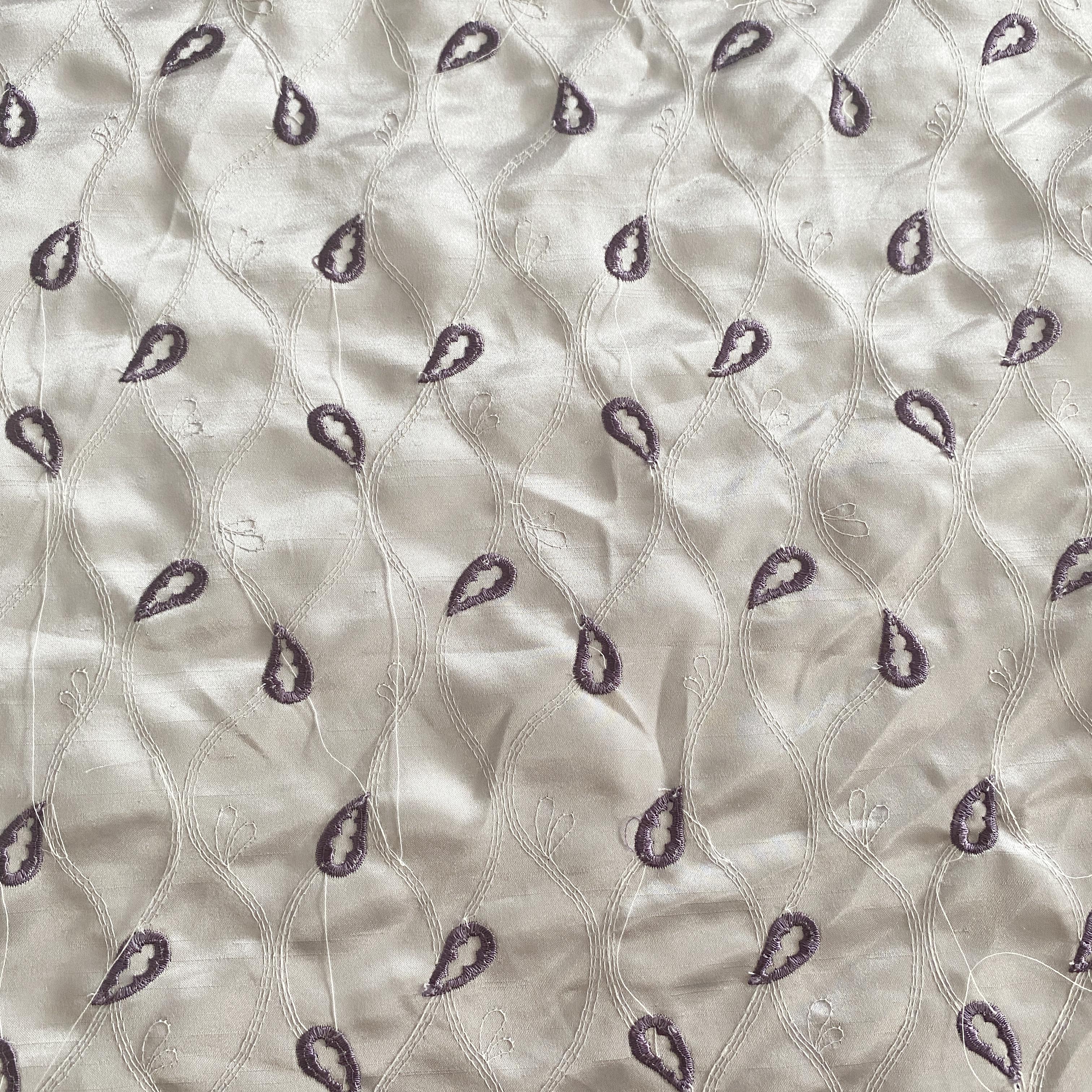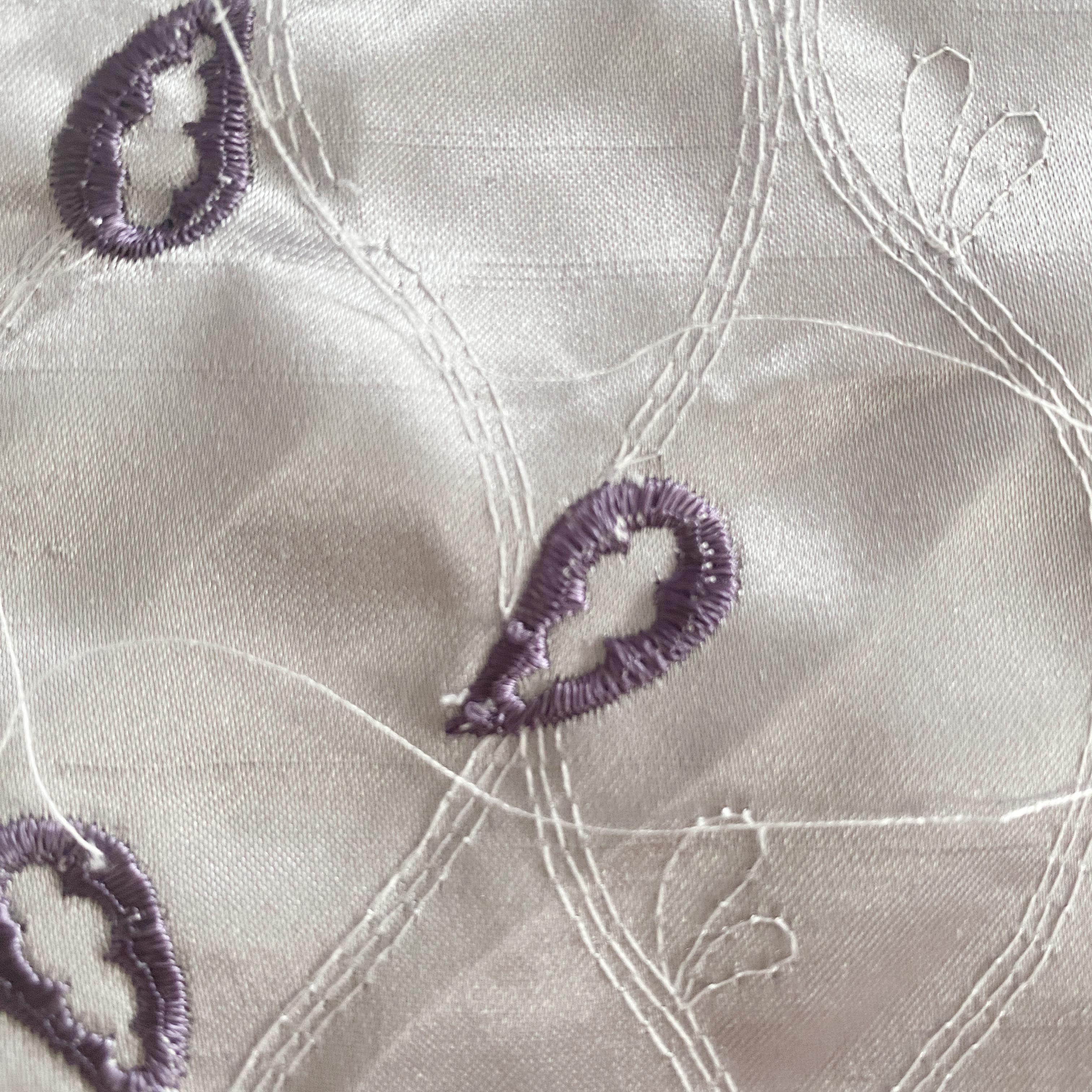 A stunningly beautiful satin feel embroidered fabric with a leafy design in a gentle soft tone of lilac. This medium weight fabric has an elegant feel, perfect for adding a touch of class to your home.