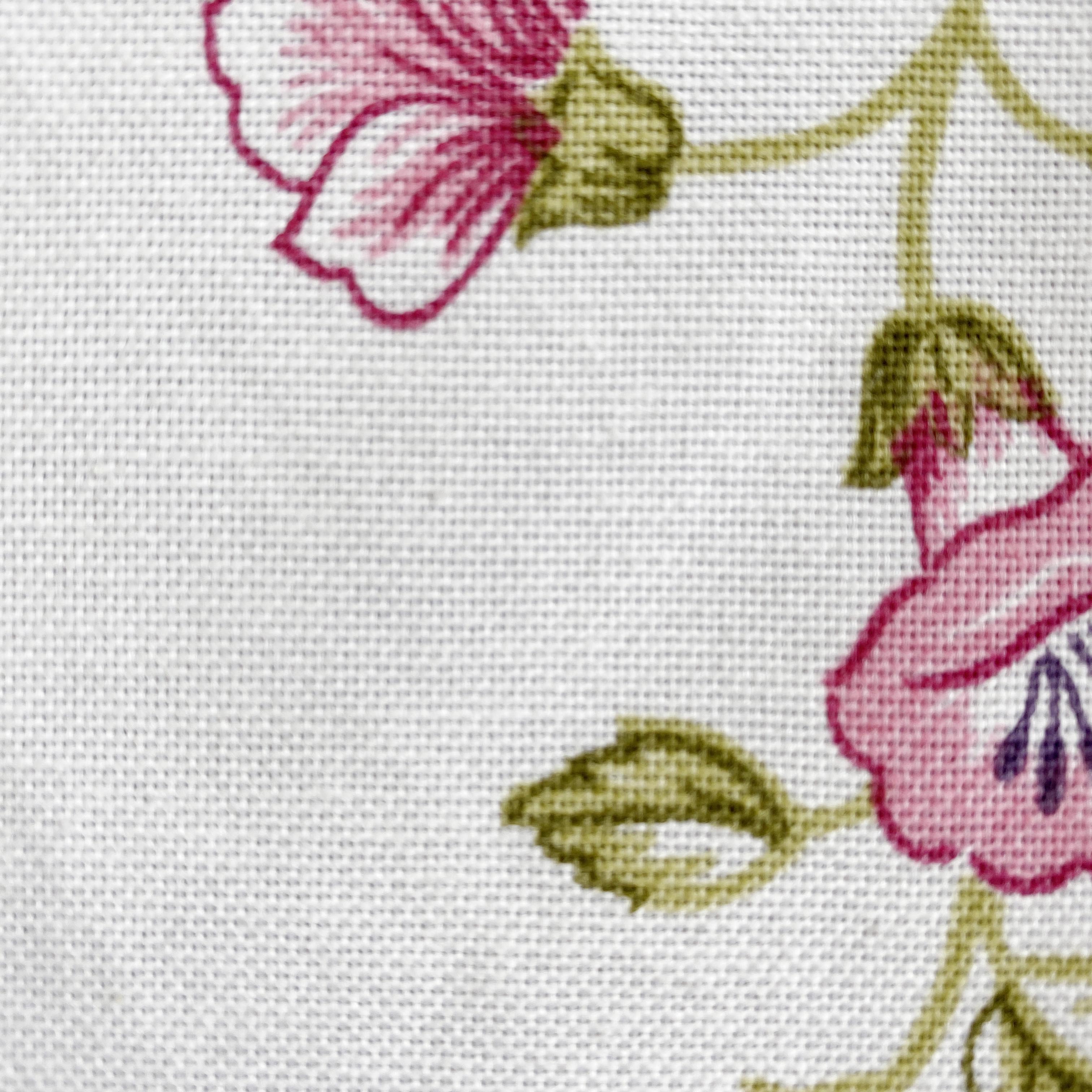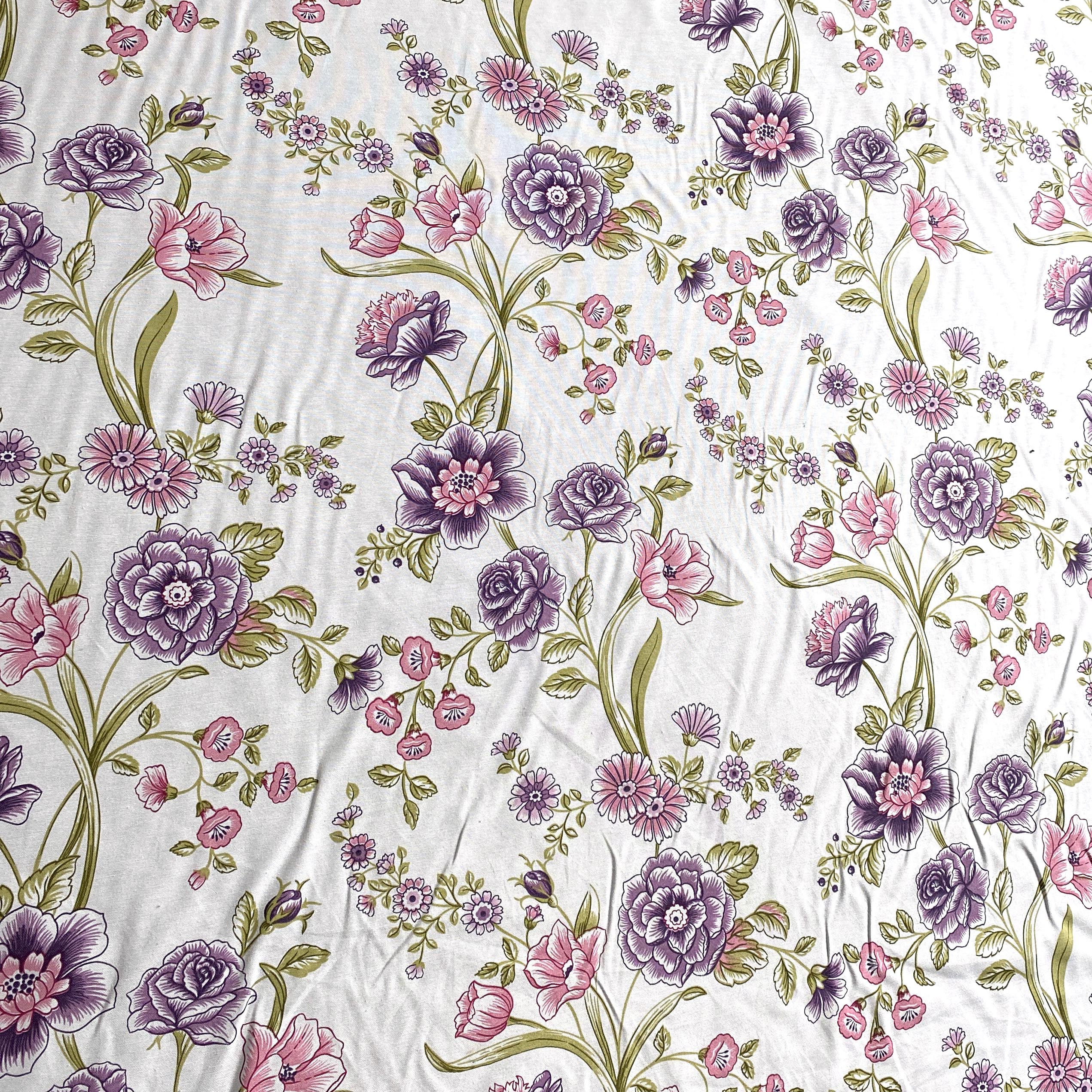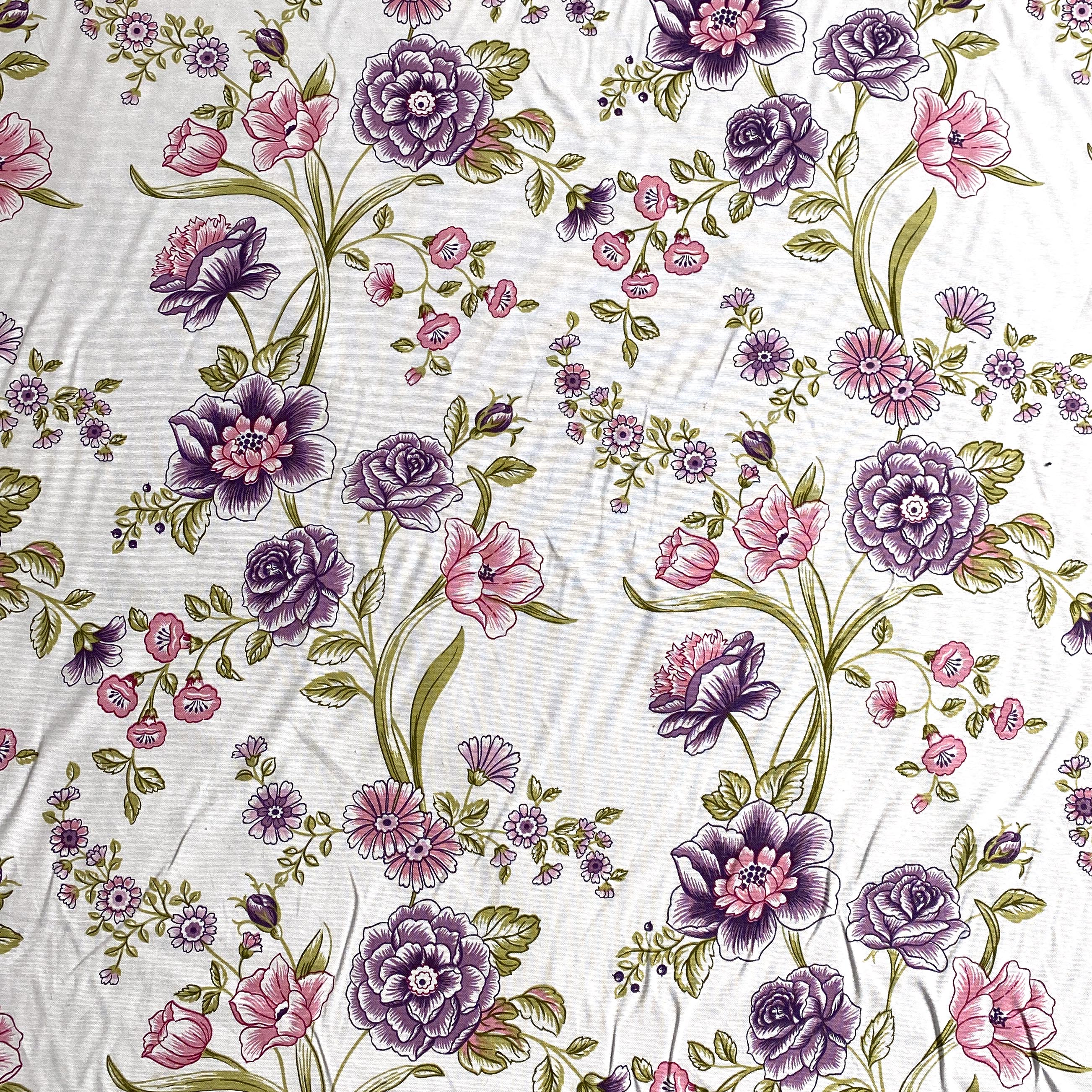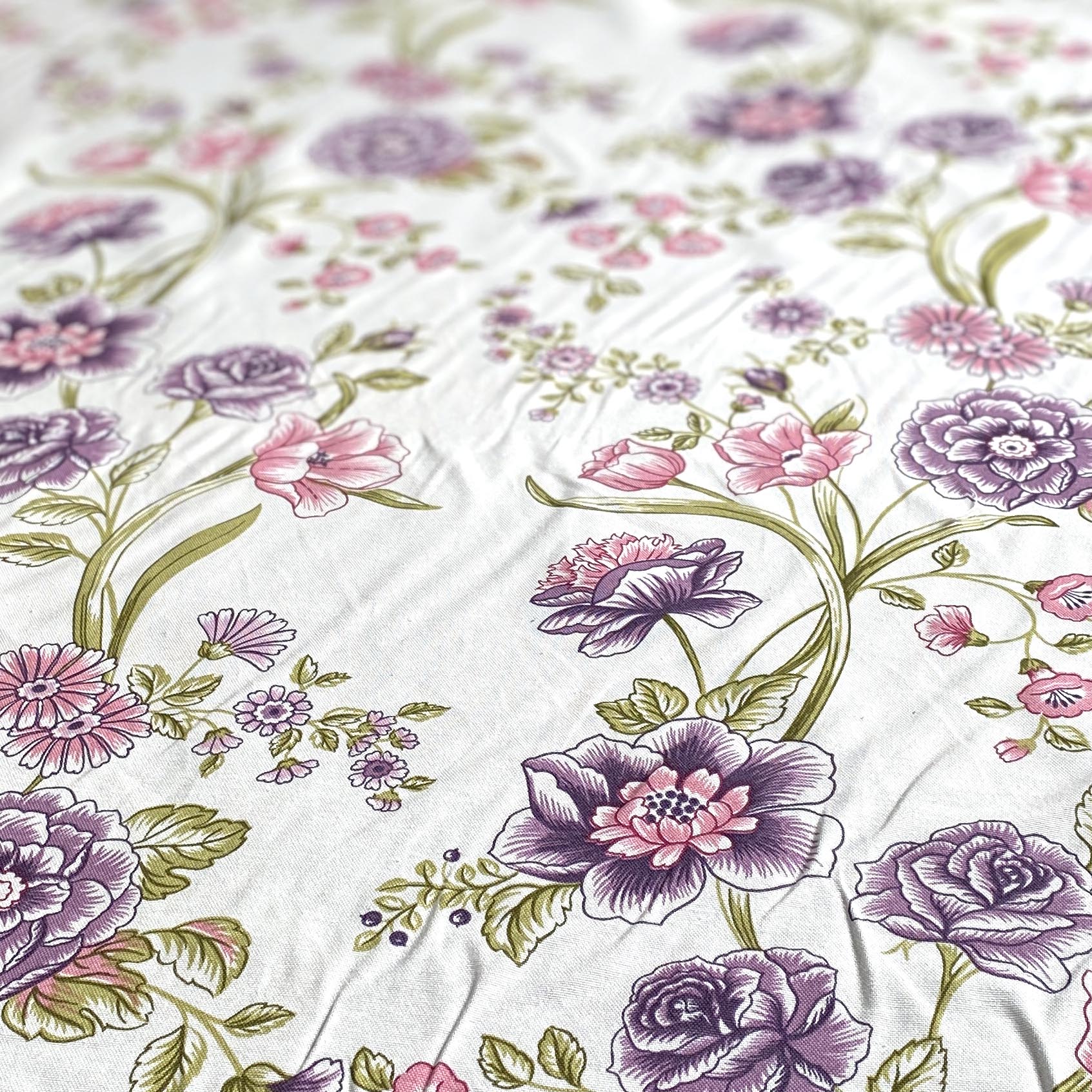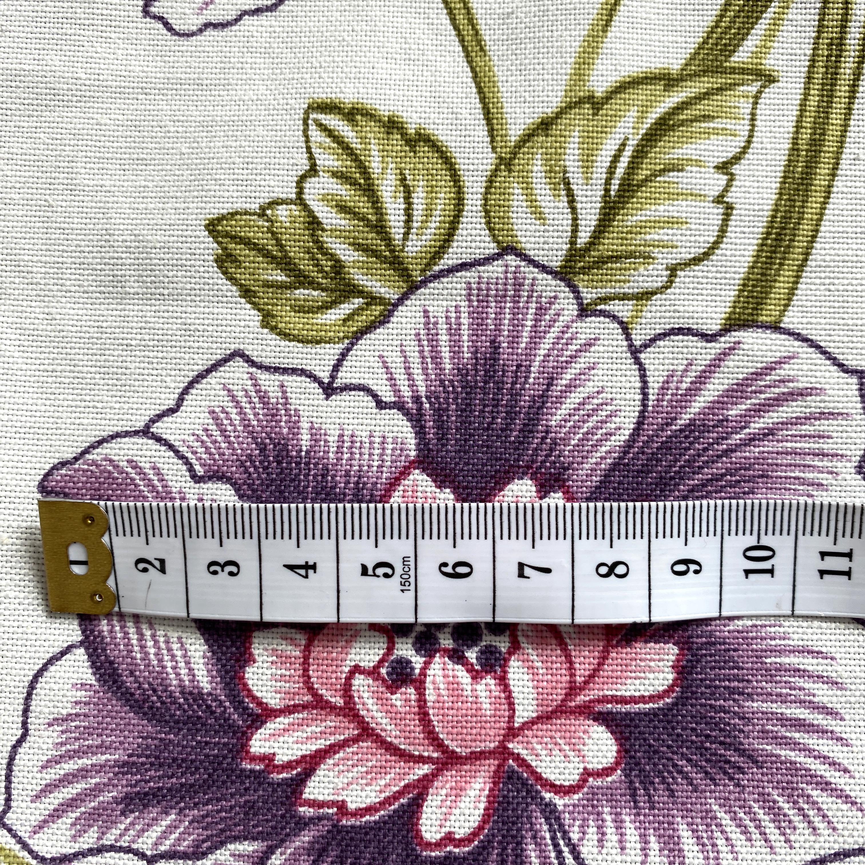 Suitable for soft furnishing projects and crafts. This pretty medium weight cotton floral pattern in tones of purple and pink, set on a white background is perfect for bringing the outside in for a spring garden ambience.