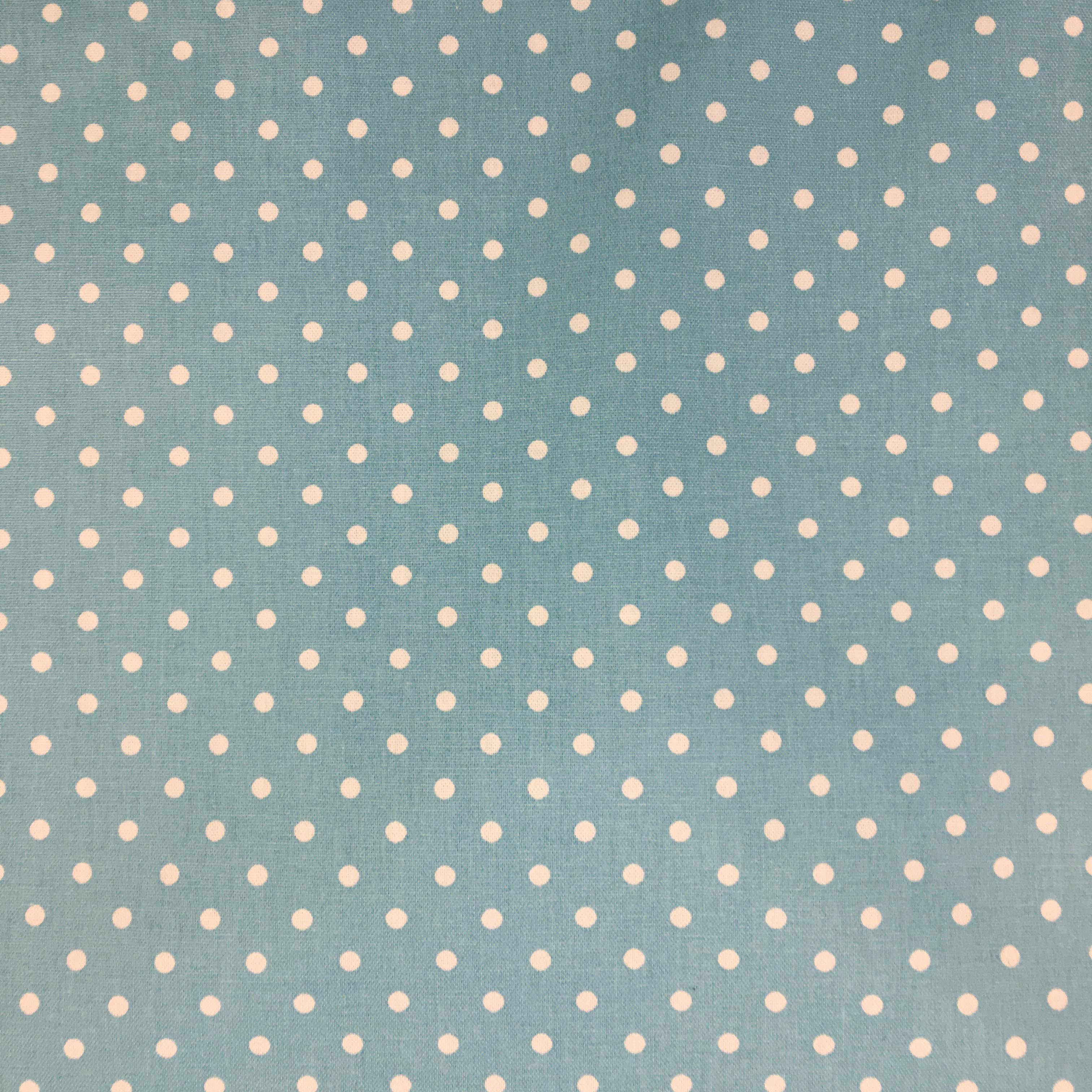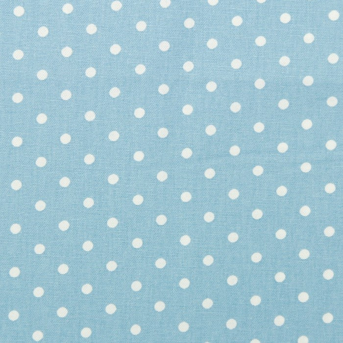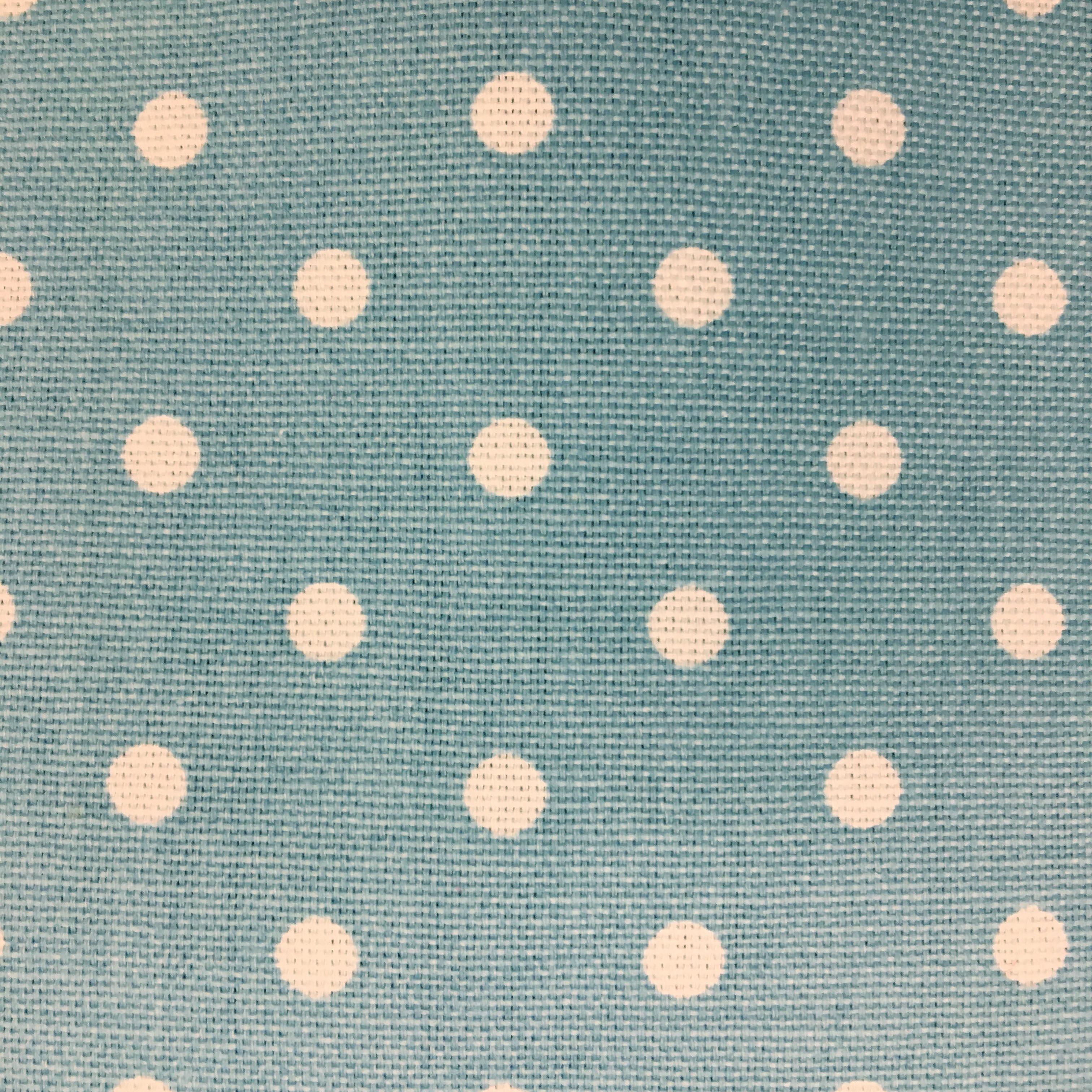 Suitable for soft furnishings, curtains and craft. A pale soft blue print with natural fibres in a spotty design. Ideal for nurseries!