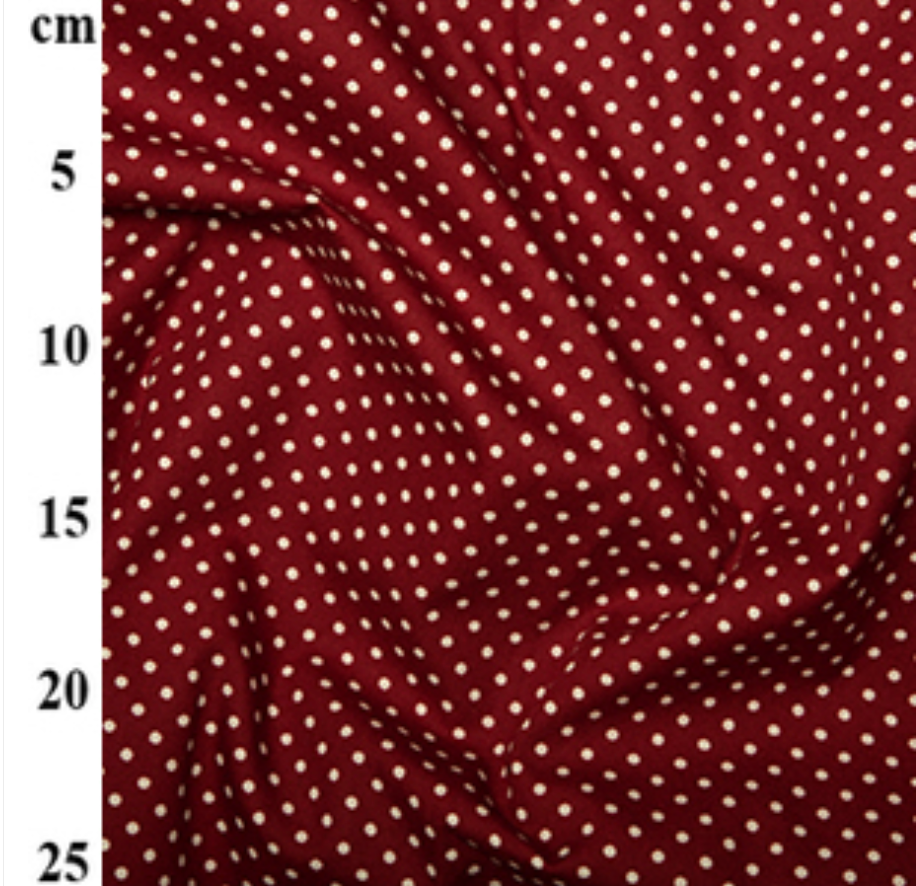 Width: 112cm 3mm diameter spots in a deep red wine colour.