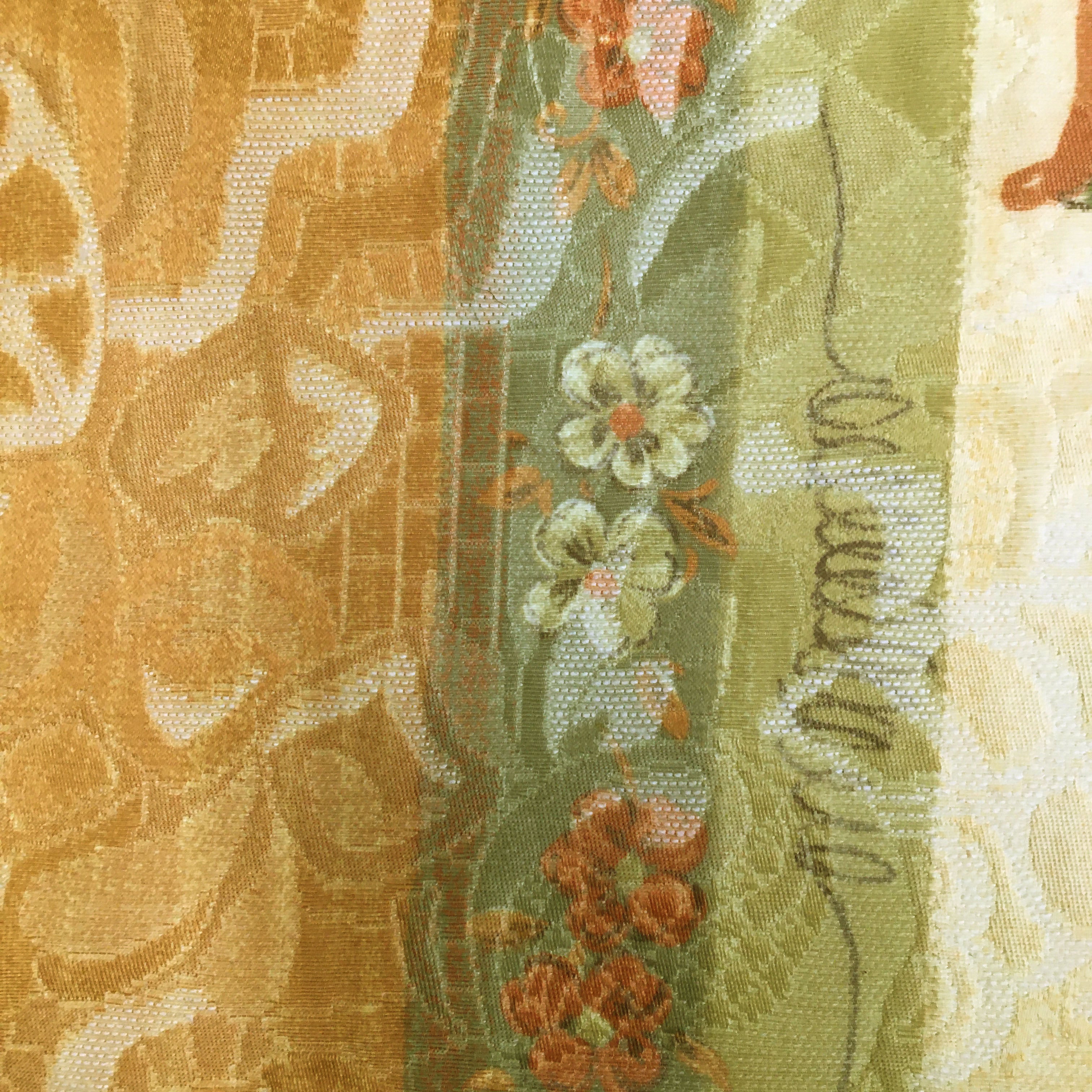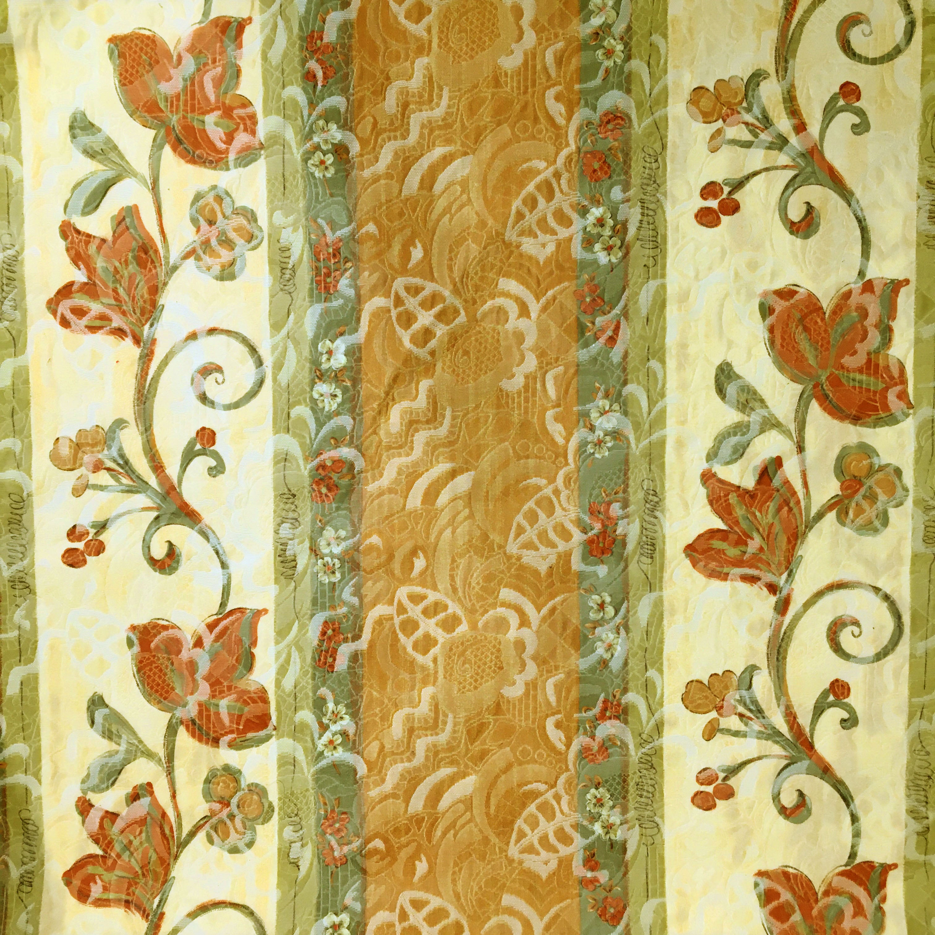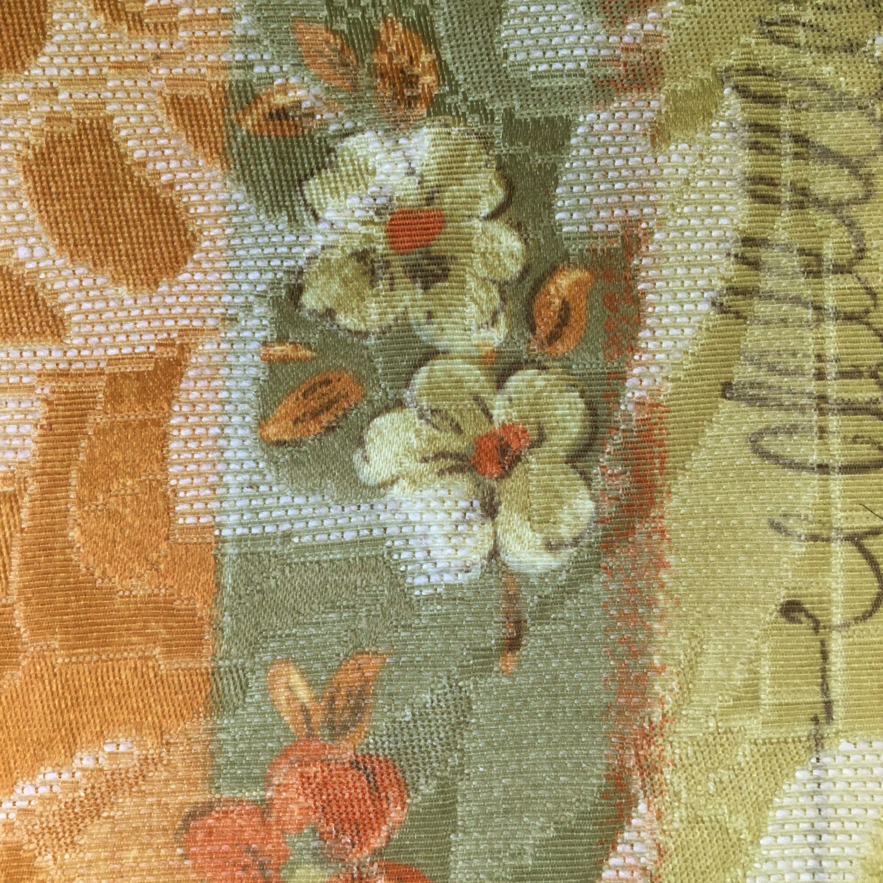 A very heavy weight fabric with large flowers in Gold, Brown and Red.