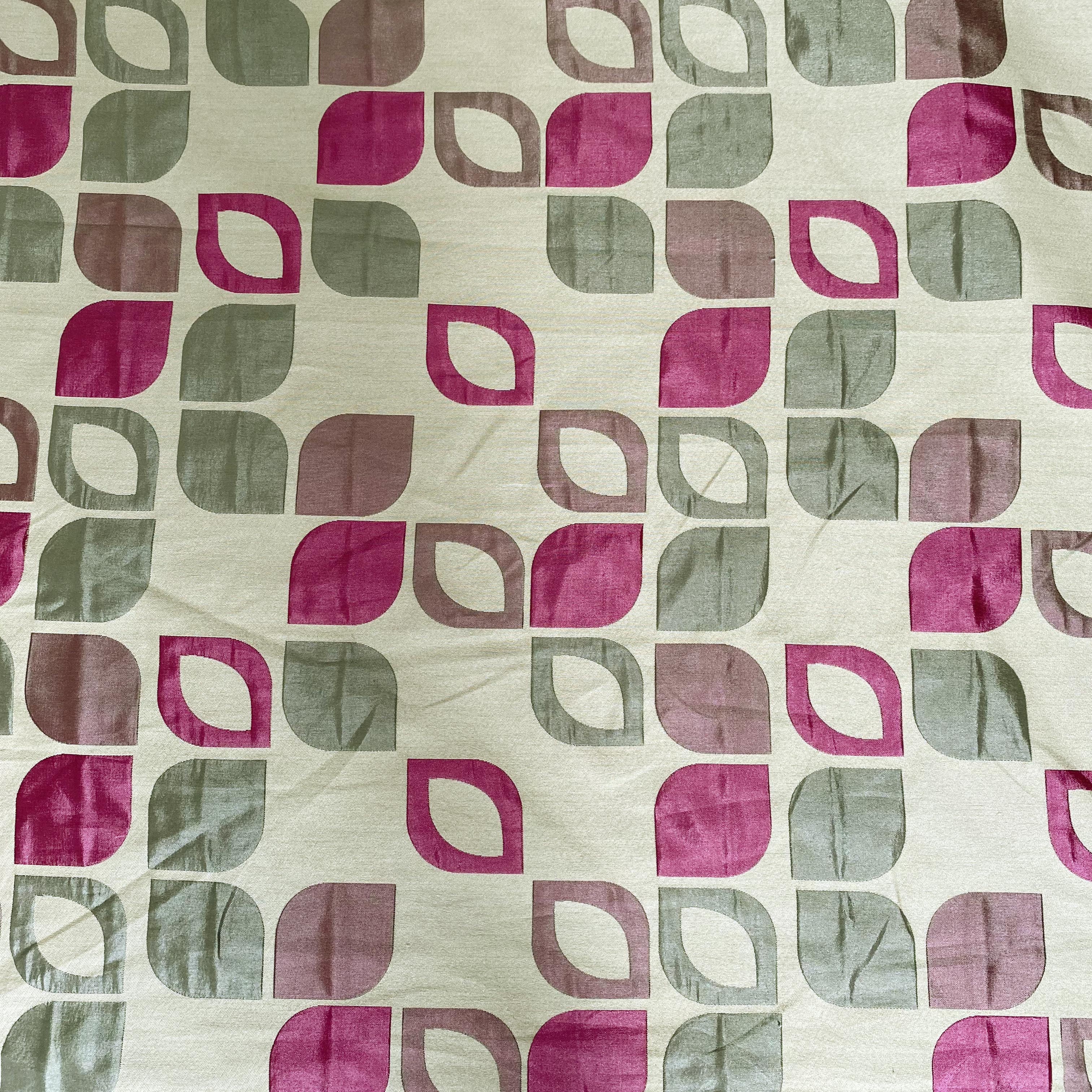 Suitable for soft furnishing and craft. A lightweight shiny fabric, with a retro gold and pink floral design, this would be ideal for curtains, cushions and craft projects. Perfect for adding a touch of glam to any room.