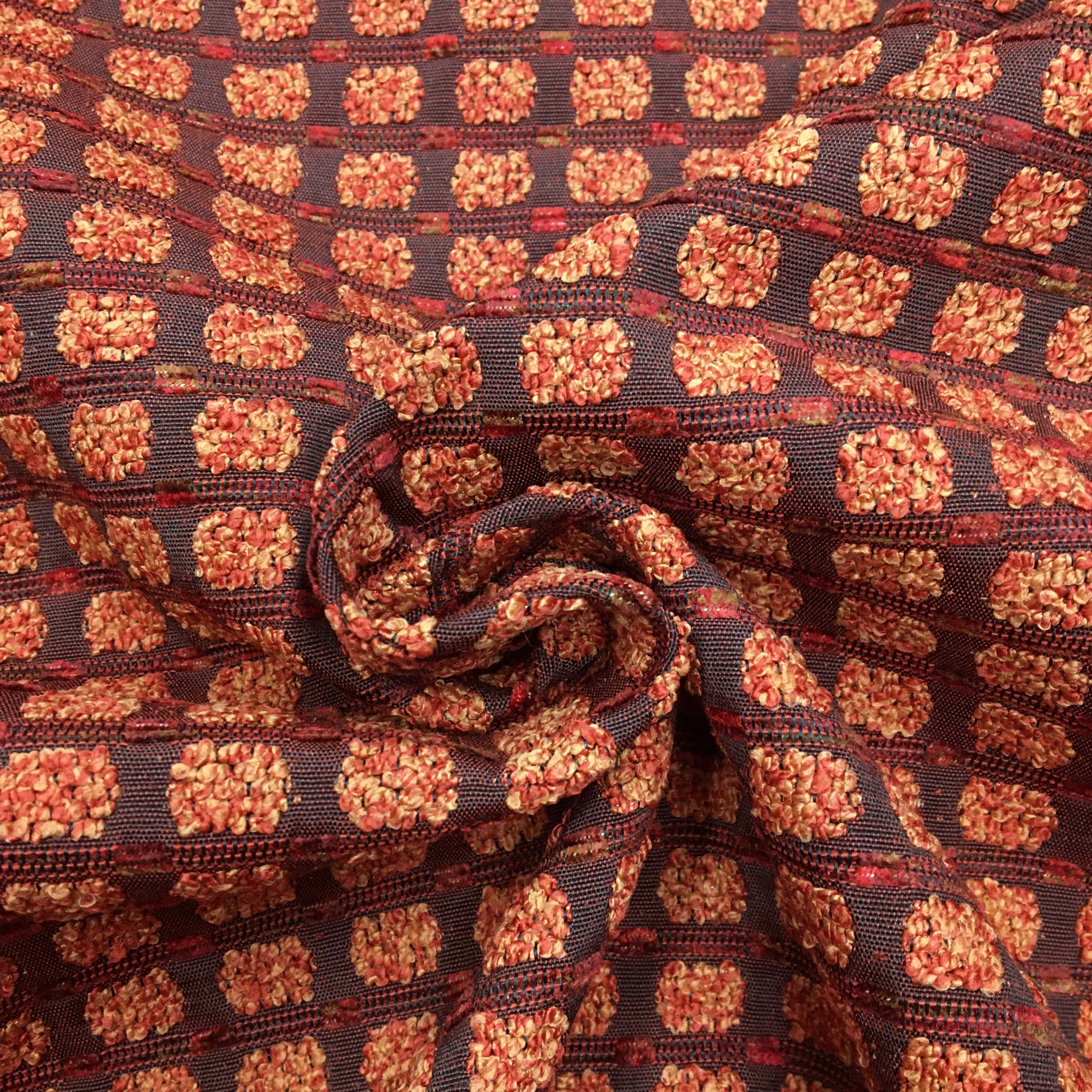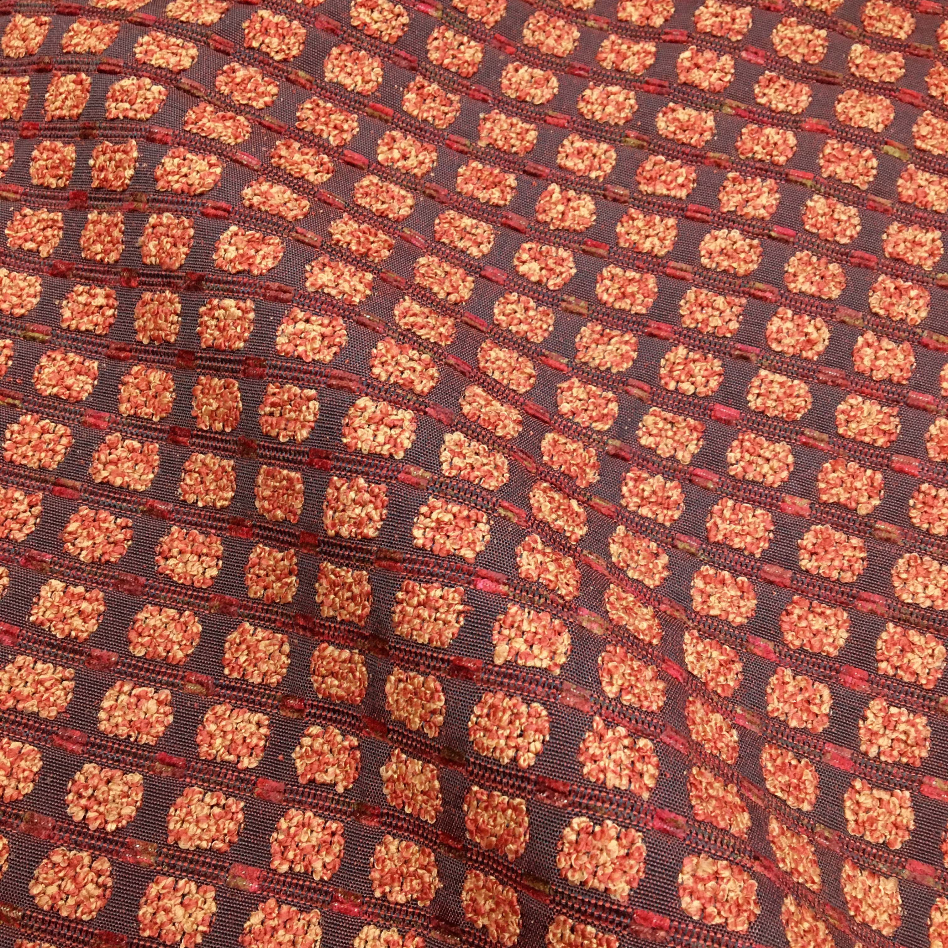 A medium/heavyweight retro raised chenille fabric in a deep tone of brick red. It's soft touch raised chenille design is perfect for creating an elegant ambience to any room.