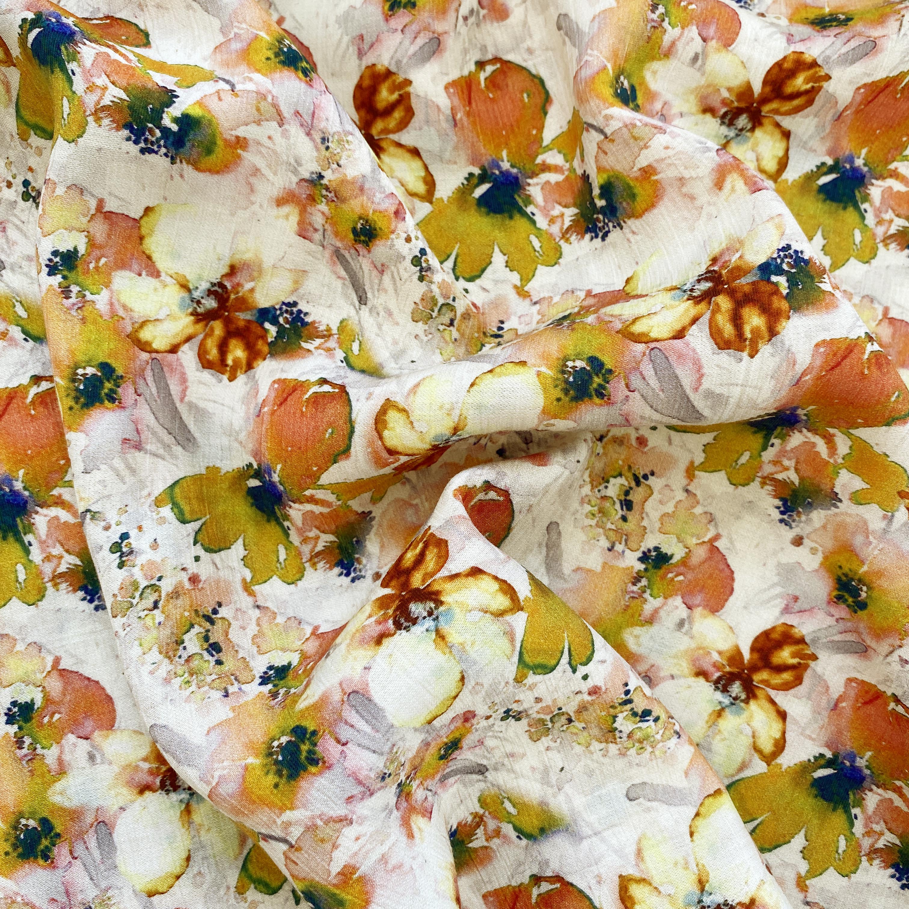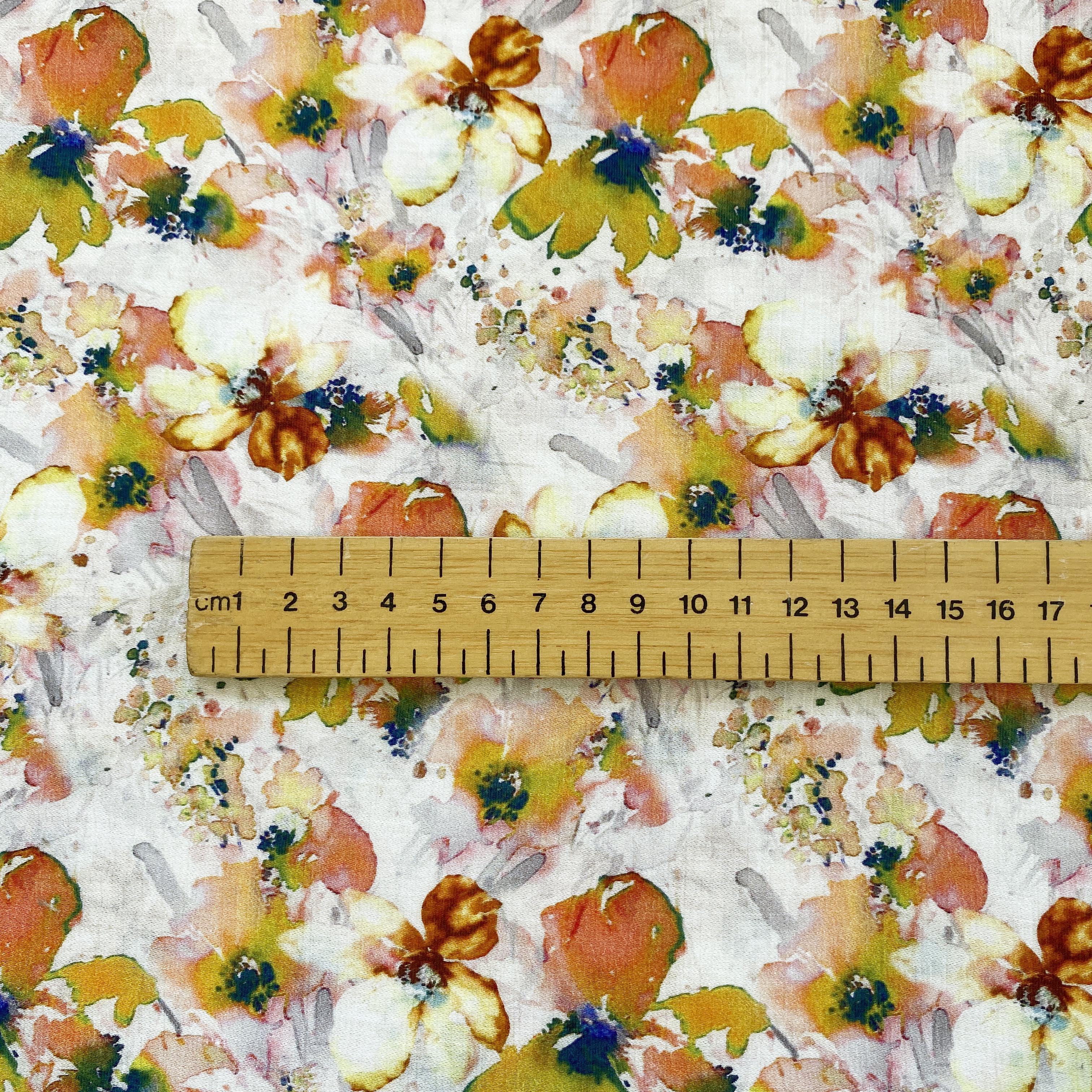 This yellow floral mix, light weight fabric with a floaty feel is perfect for Summer and would make a lovely little dress. Breathable and pretty, it is ideal for beachwear and Summer dress wear.