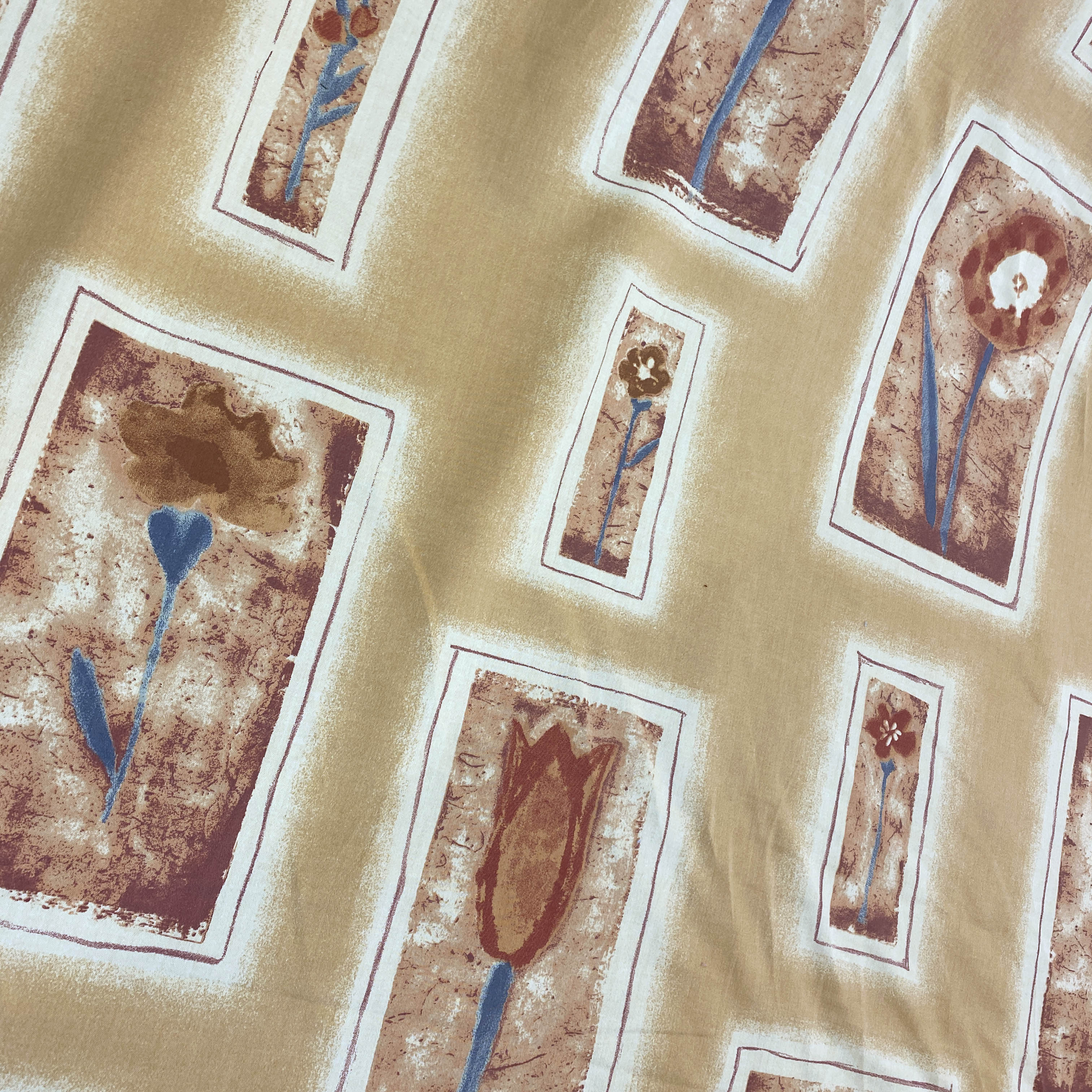 A unique fabric with a beautiful rustic large floral print pattern, in rustic tones of red and orange, this fabric has a striking design for a warm and cosy feel. Suitable for soft furnishing, curtains, cushions and crafts.