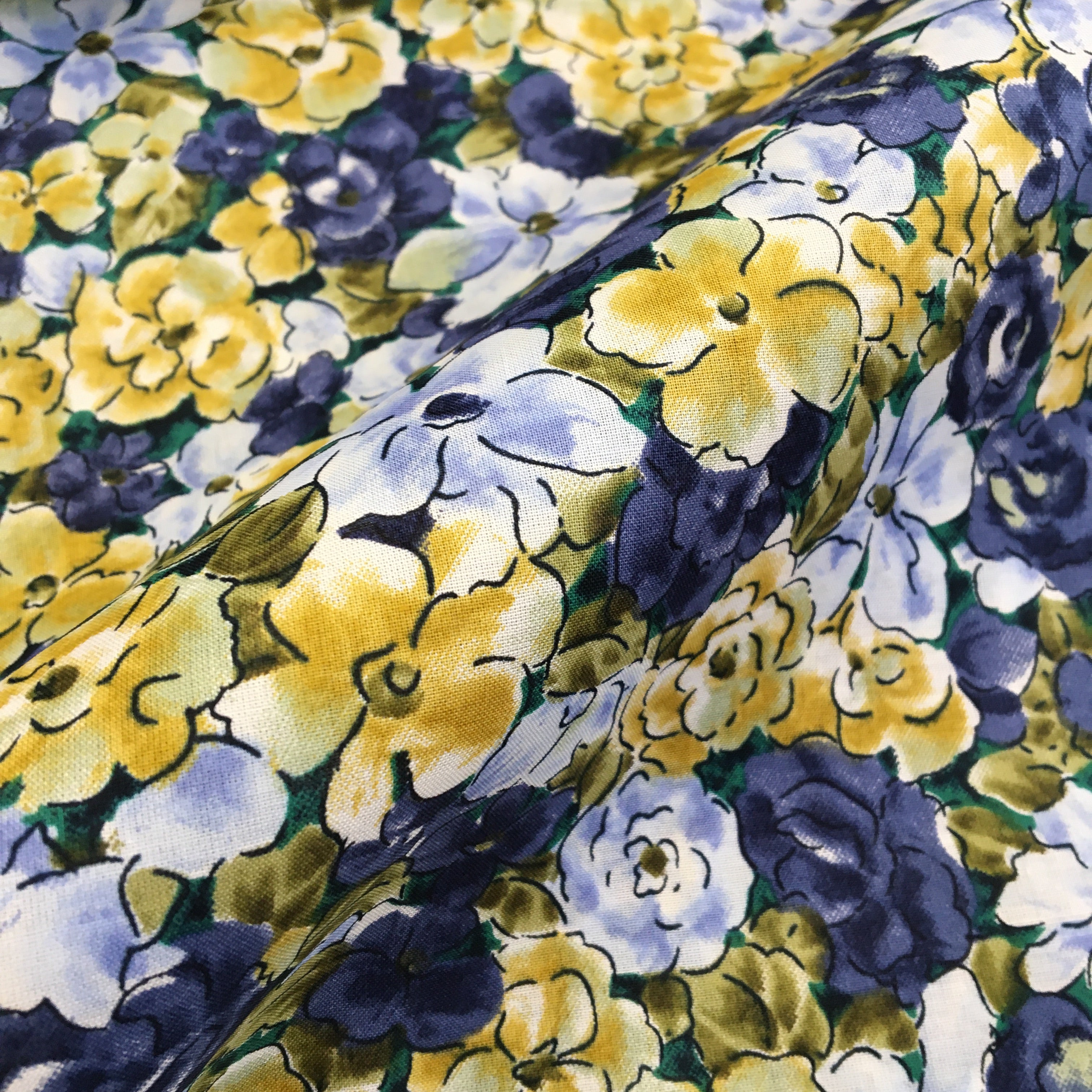A pretty floral explosion of blues and mustard yellows/green, this would be perfect for a little Summer dress or blouse. Ideal for dress wear.