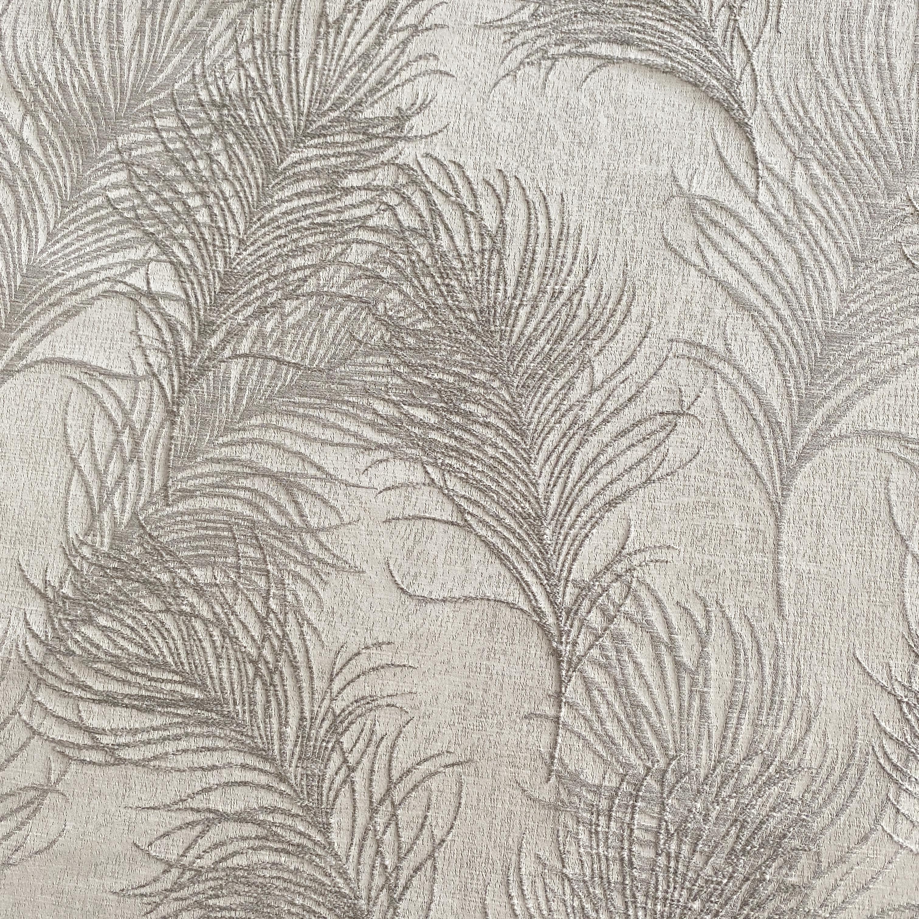 A stunningly beautiful mixed fibres fabric with a silver ostrich feather design. This medium to heavy weight fabric has an elegant feel, perfect for adding a touch of class to your home.